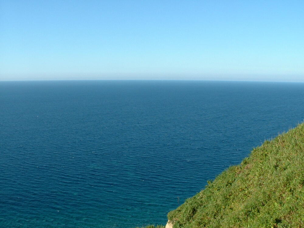 ◎伝説などどうでもいい。この日本海の限りない青さに圧倒される。風もなく、ただ細波だけが凪いでいる。この水平線の向こうはロシアである。
