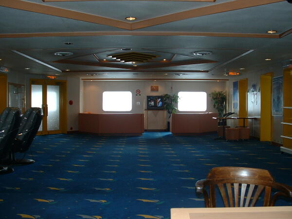 ◎二段ベットで仮眠して、さわやかに朝が来た。長距離フェリーは初めての経験なので、わくわくして歩きまわっている。