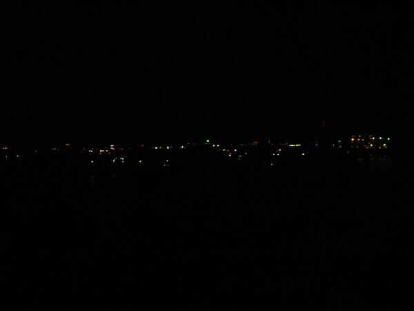 ◎真っ暗のようだが、色とりどりの明かりがきれいだ。真夜中の0:00時、波の音が響く。汽笛の音が聞こえた。