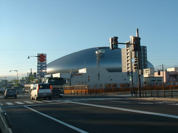 ◎早々に公園を出て大通りに出た。おぉ、これが札幌ドームか、はじめて見るがやはり大きい。この信号を右に曲がってみよう。何処に行くのだろう?。