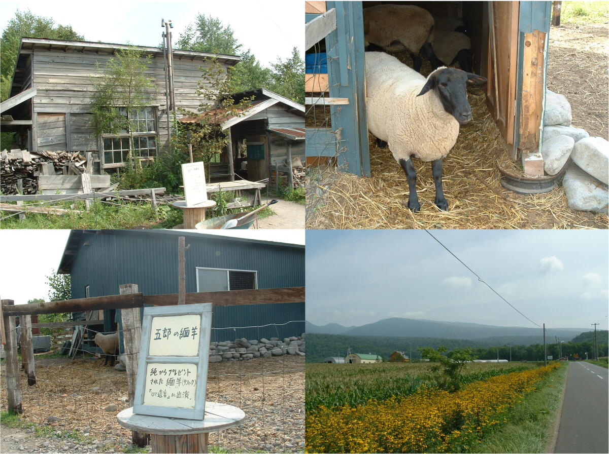 ◎ドラマの中で出てくる羊だ。生きている本物である。さて、麓郷はこれ位にして、花の道を下って富良野探訪に行くことにする。エンジンはふかさずニュートラで下までいけるのだ。
