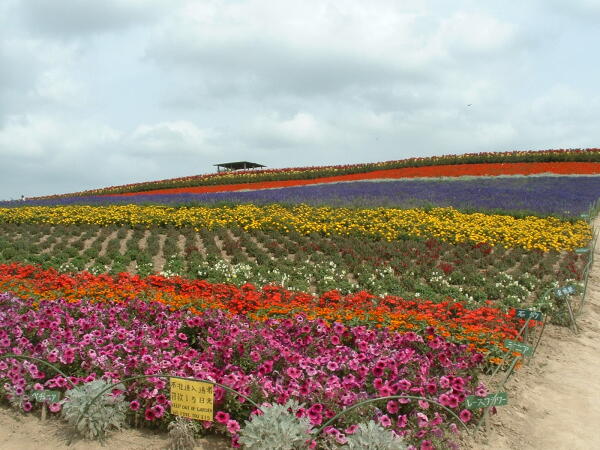 ◎ここが花畑で有名な場所か。駐車場には観光バスがいっぱい出入りしている。入場料は要らないみたいだが、中に入ると欲しいお土産がいっぱい。お金つかいそう。