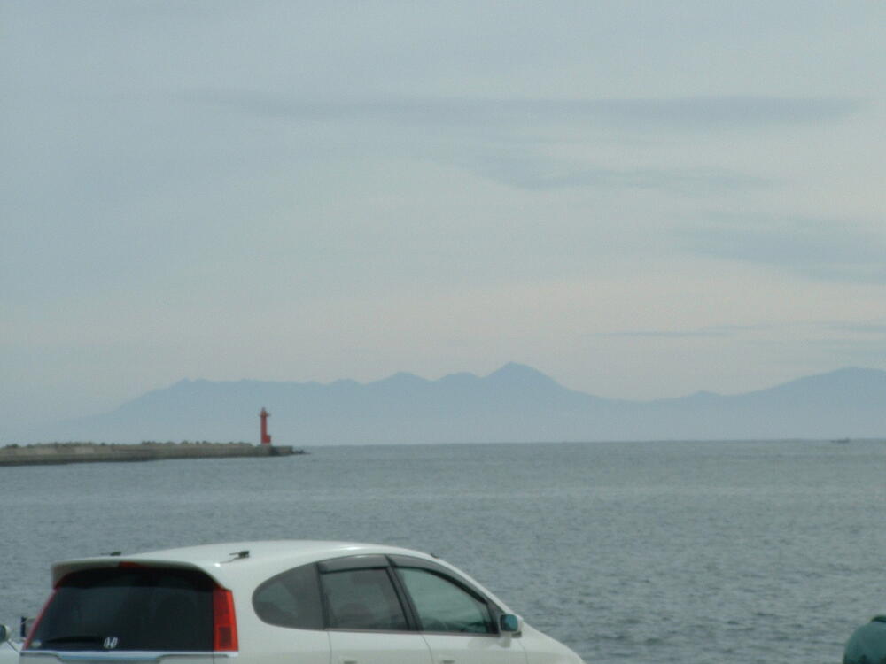 ◎右の一番高いのが羅臼岳。そして、知床硫黄岳、知床岳と連なり、岬へとつずく。ここ、網走港の波止場にも、かなりの自家用車がきている。さあ、知床に出かけるか。