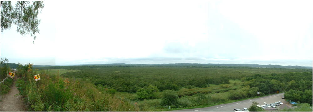 ◎少し行くと、階段があって、登って行くとパノラマの景色だ。これは広い、向こうの山まで湿原だとしたら、そうとうなものだ。尾瀬の景色とは、だいぶ違うな。
