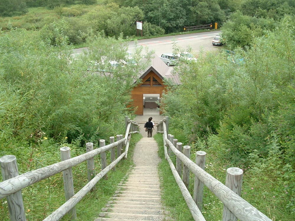 ◎見晴し階段である。ここを降りても、車で湿原の中には入れないので、湿原の渕を周ってゆくしか道は無い。とにかく行ってみるか。