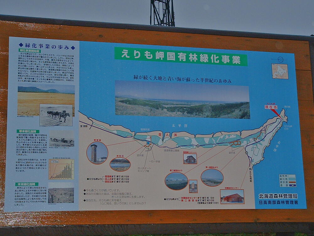 ◎ここが森進一の歌で有名な襟裳岬だ。あの看板のとおり風が強い。雨も降っているので海は見れない。長い旅だ、こんな事もあるだろう、しかたない。