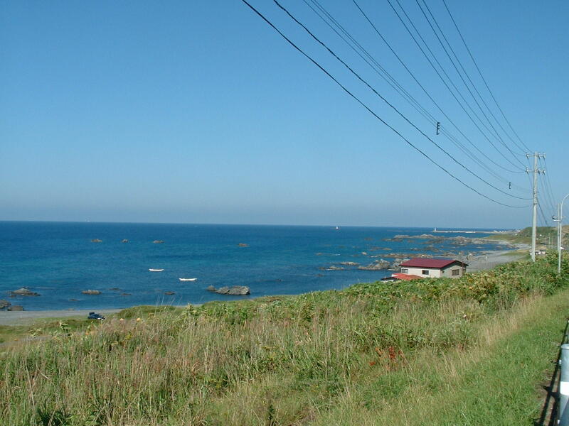 ◎江差に着く前に、あまりにも素敵で美しい景色が広がった。これはカメラを持っていて、写さなければ罪になる。マイ、パソコンの壁紙にもしたい。憎い電線だ。